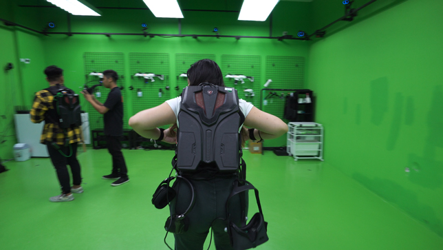 Surprisingly, the vest and backpack weren’t as heavy as I expected. The gameplay view in the oculus rift also shows a demarcation line where you shouldn’t cross because after all you are still in a room and you might run into a wall. If you do get too close to the line, the vest you are wearing will vibrate and the graphics in your oculus rift will also get blurry to warn you to take a step back, so there’s no need to worry about running into a wall and hurting yourself.
