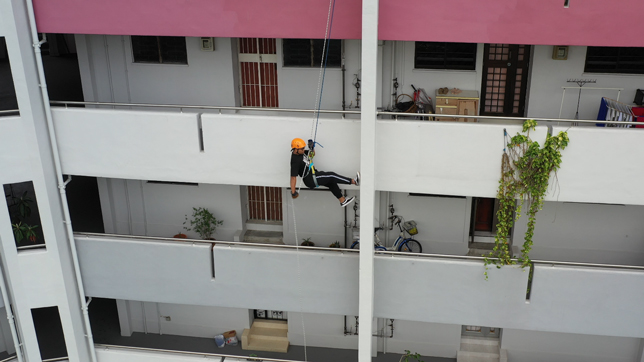 Even if you’ve tried it once, every month West Coast CC YEC makes an effort to choose a different block to abseil off. “We’ve got blocks with character,” says, Murali Rao, West Coast CC YEC, Vice-Chairman. The West Coast district is quite big stretching across the west coast to Clementi.