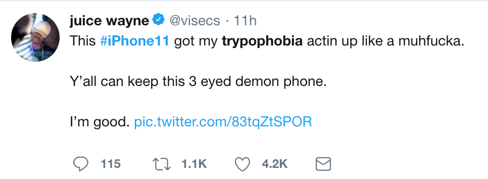 The 3 camera lenses purposes includes the original wide lenses, the Ultra wide lenses and telephoto lenses. The design sparked a lot of controversy especially among the Trypophobia. A lot of Twitter users, such as Juice Wayne and also User Steven Greenstreet, had stepped forward to talk about this issue.
