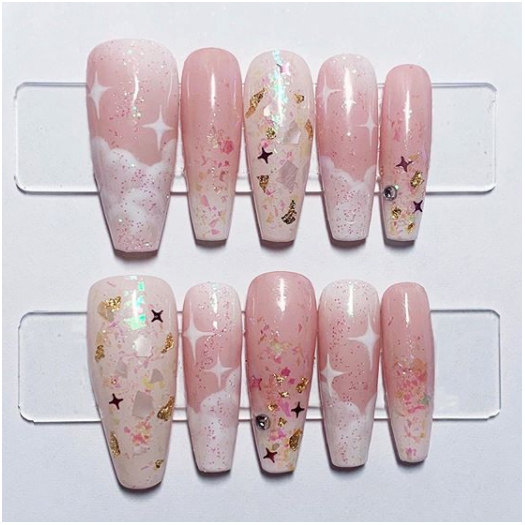 You’ll want to follow the size guide from the nail artist you’re purchasing from as they may differ. If the width of your nail is in-between those in the sizes, choose the bigger size instead of the smaller size.